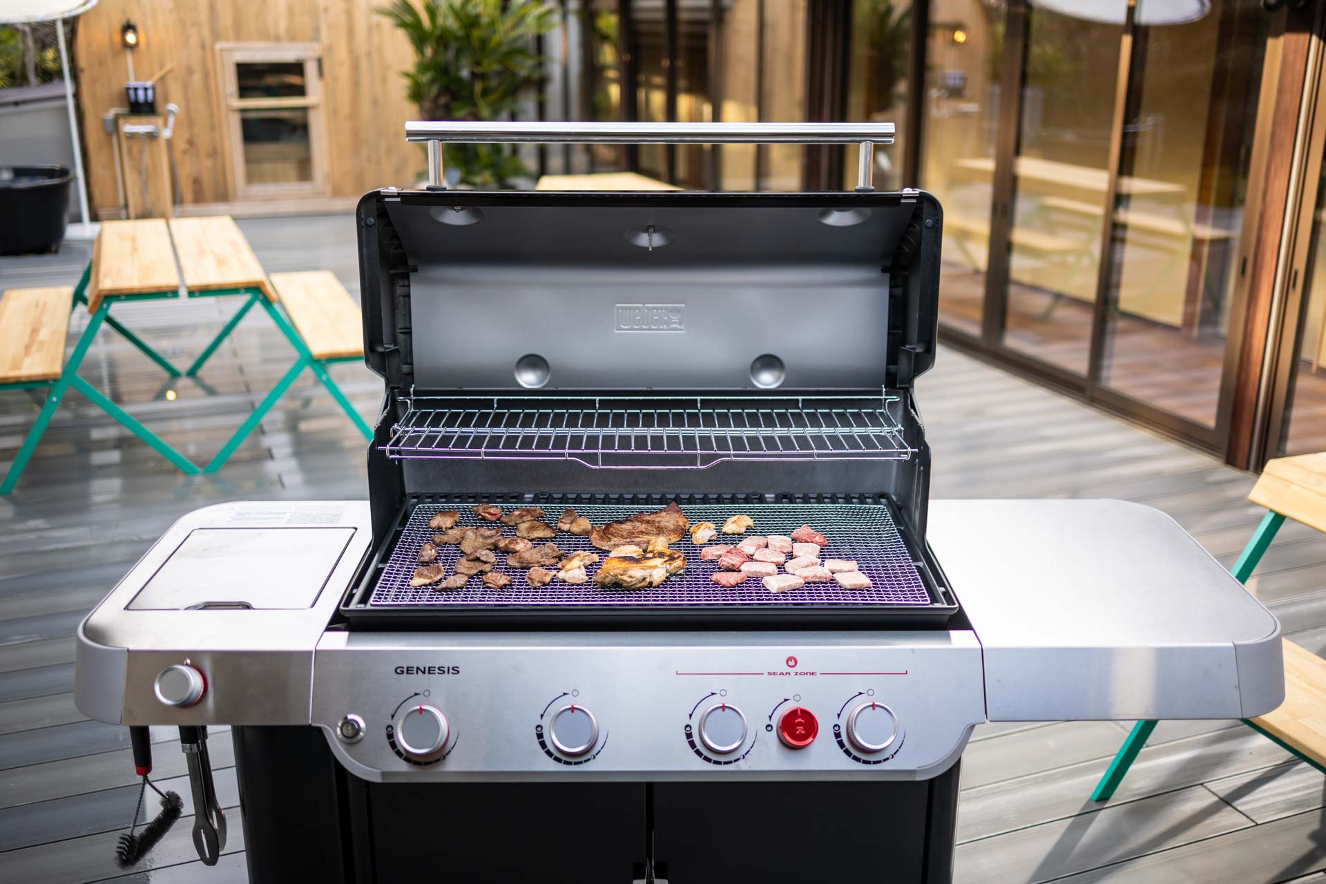 The barrel sauna can be turned on and off remotely using a