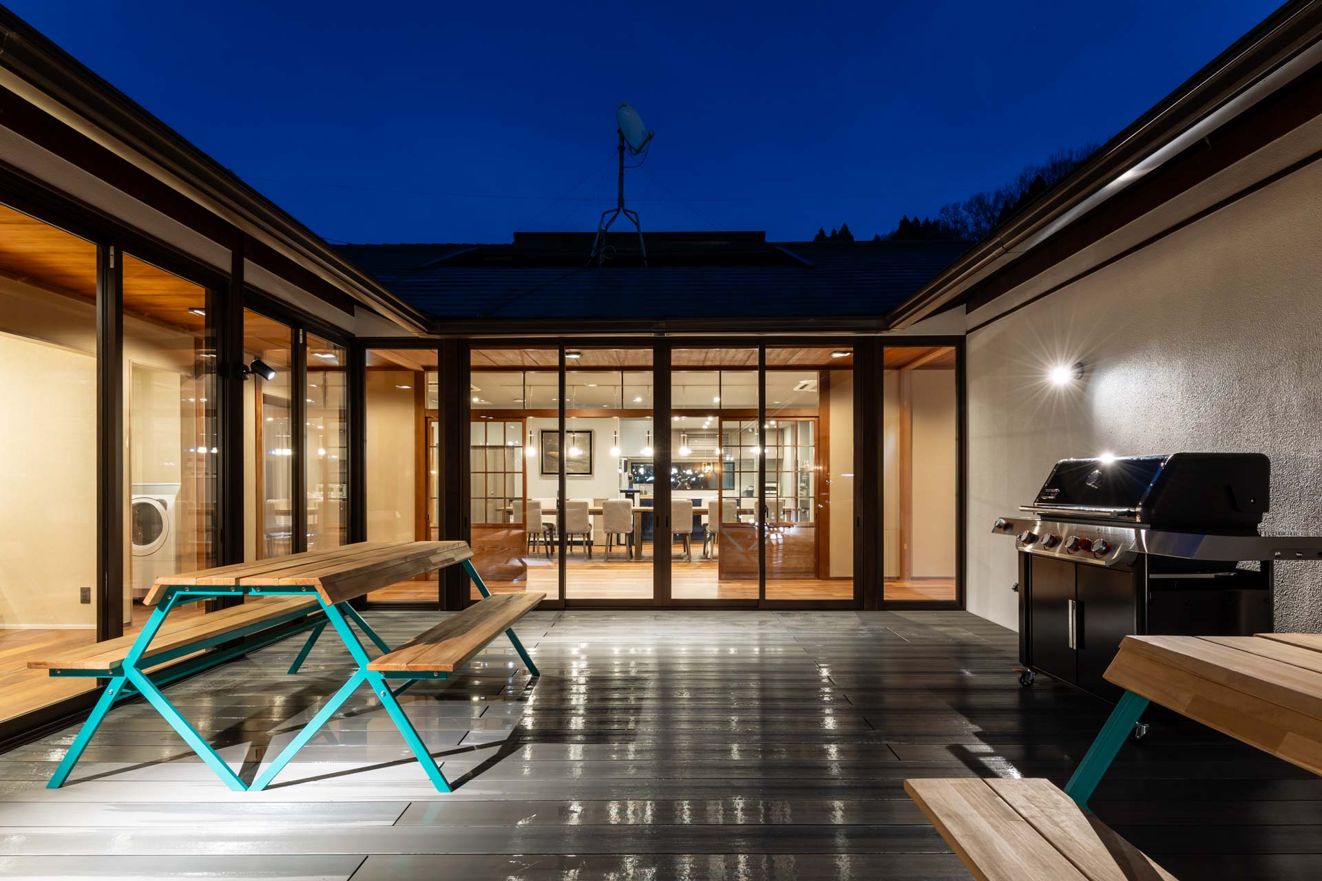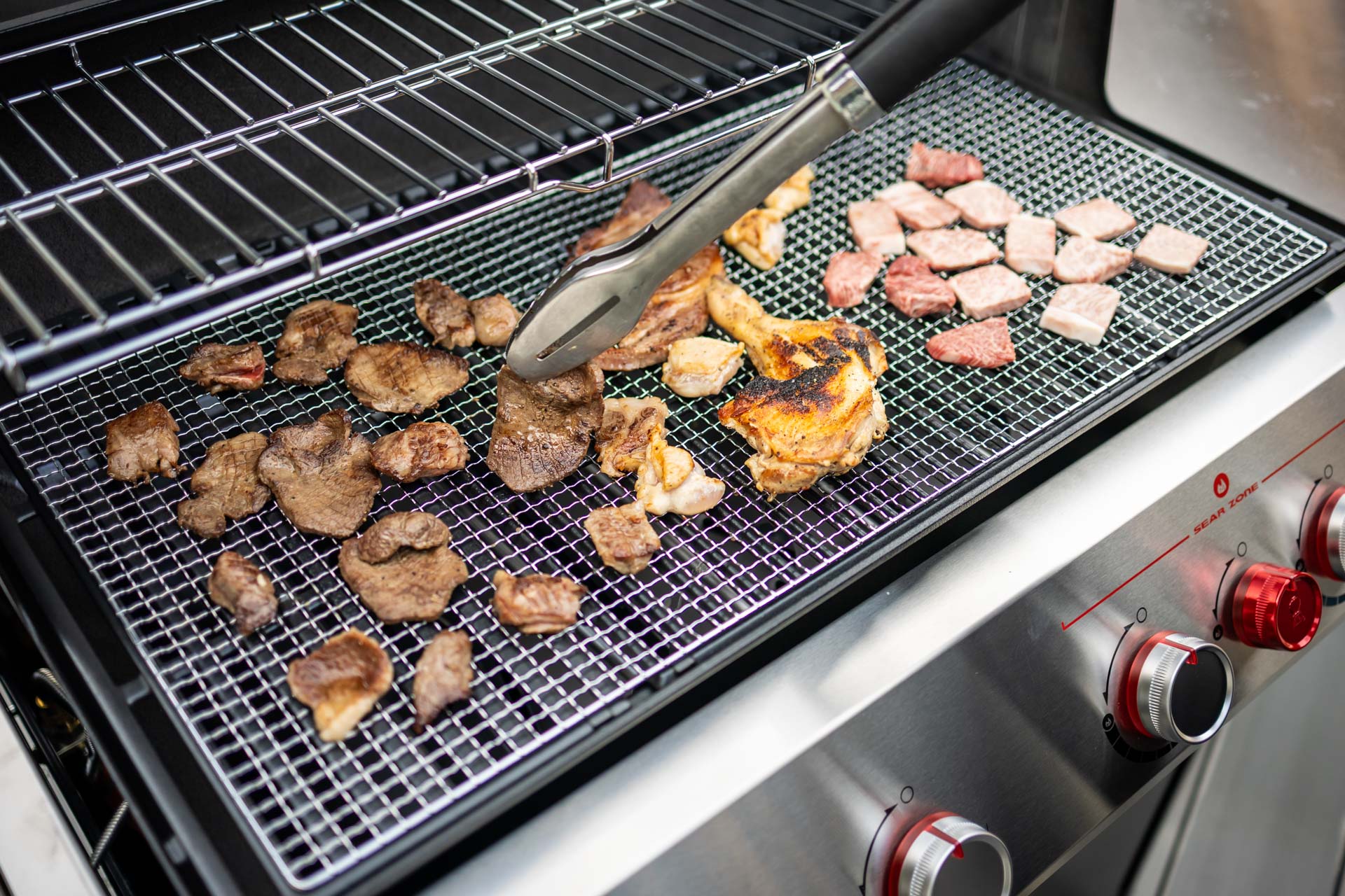 サウナで整った後は、本格グリルを囲んで賑やかに。