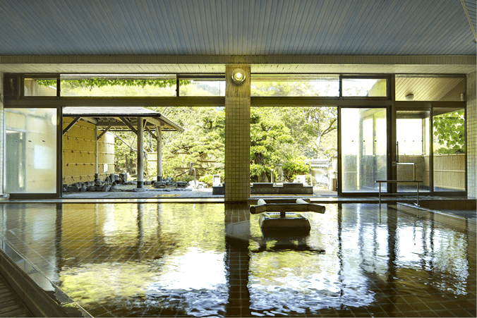 隣接する温泉旅館「不死王閣」の天然温泉は、