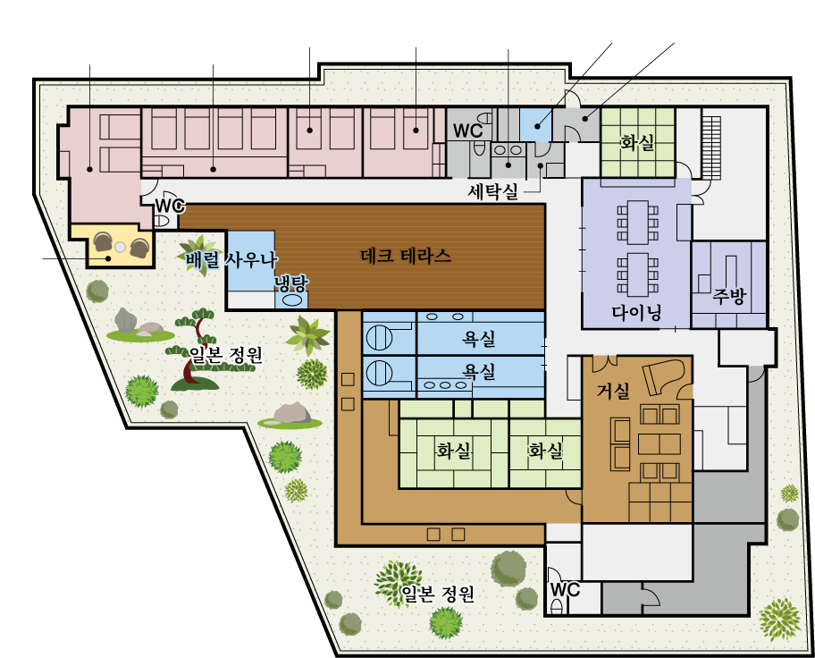 정원을 감상할 수 있는 힐링룸을 배치하여
