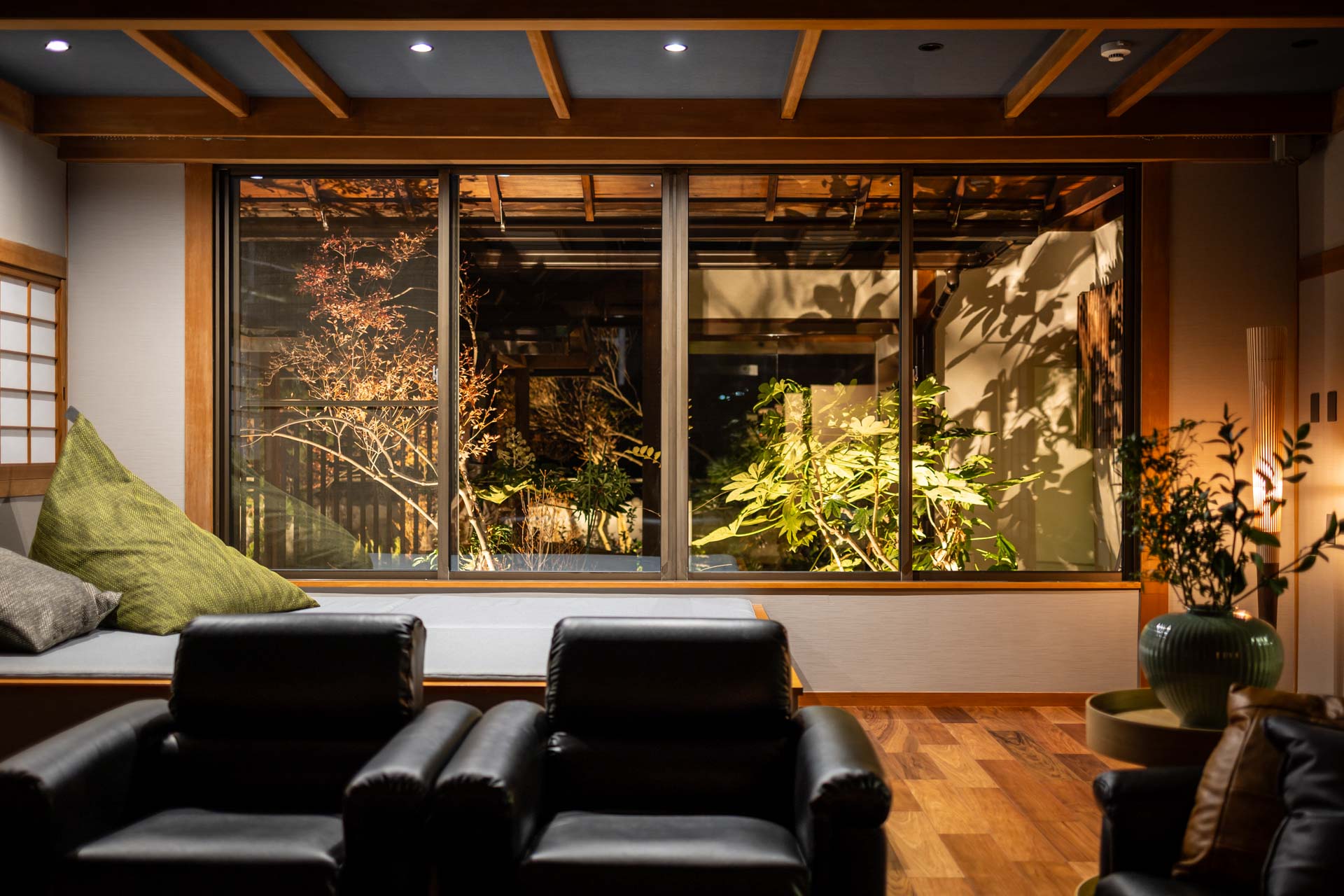 庭園を眺める開放的なヒーリングルームを配し、